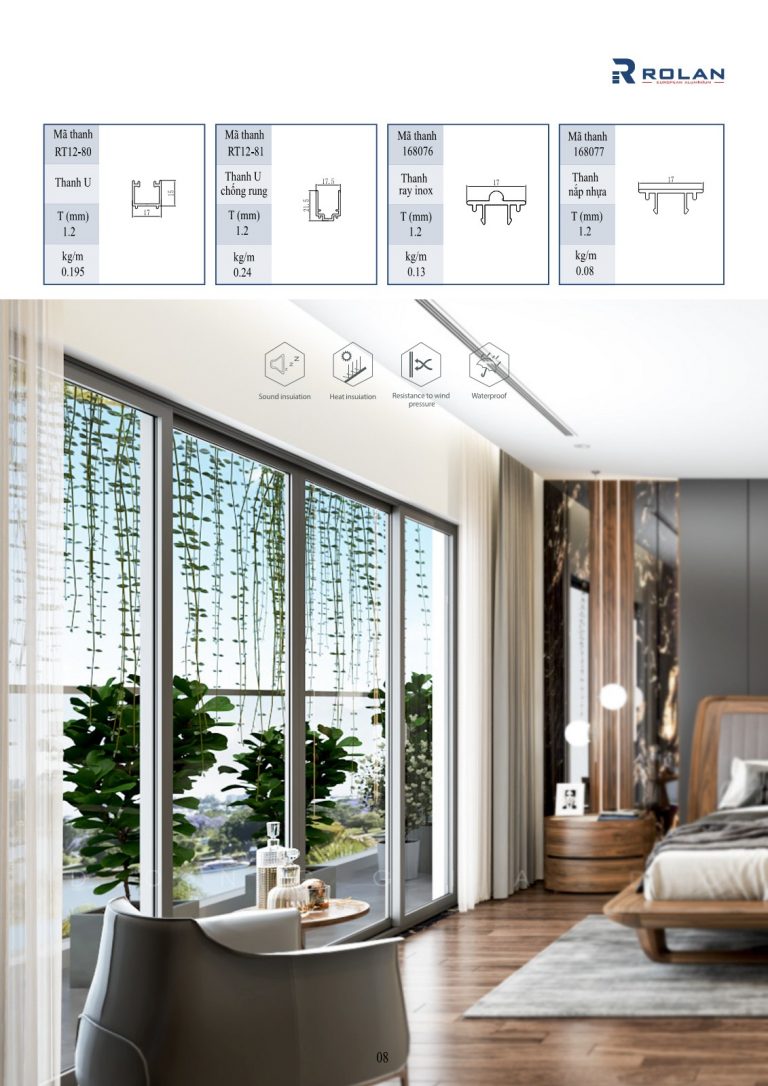 Cửa nhôm rãnh C Rolan là một thương hiệu cửa nhôm phân khúc cao cấp được thiết kế theo tiêu chuẩn Châu Âu, hệ thống gioăng trung gian 2 thành phần đồng bộ, độ kín khít cao với 3 lớp gioăng, cửa nhôm Rolan được sơn với dòng sơn tĩnh điện cao cấp AkzoNobel phủ oxy hóa bề mặt, kết hợp với phụ kiện Cmech, Hopo cao cấp, cửa nhôm Rolan đem đến cho người Việt một giải pháp hữu hiệu cách âm, cách nhiệt tốt nhất, tạo nên một kiểu dáng khi đóng mở chắc chắn, nhẹ nhàng, thanh thoát, cùng khả năng vận hành linh hoạt, êm ái, nhôm Rolan mang đến sự cảm nhận tiện ích không gian yên tĩnh sang trọng và đẳng cấp.